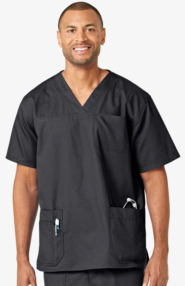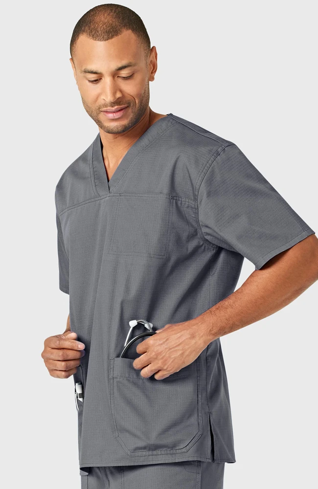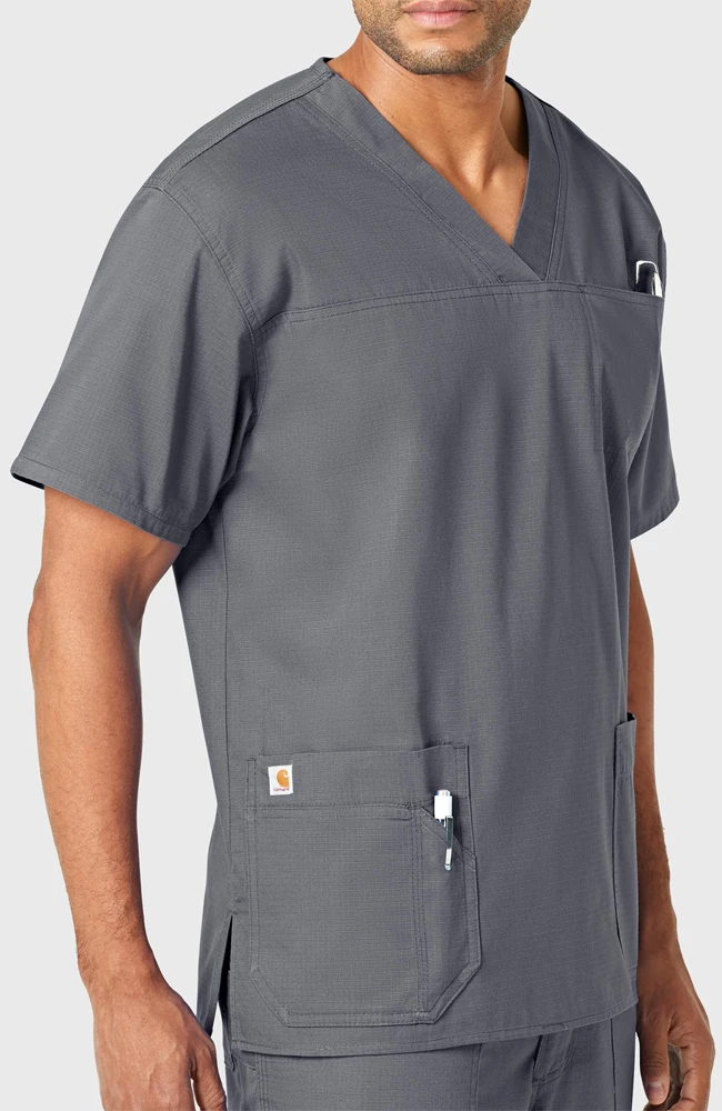 Men’s Ripstop Multi-Pocket Top scrub top from Carhartt has two tucks at the back yoke for easy movement. There are two patch pockets at front, one with a pen pocket, and another pocket at the chest yoke. Side vents and shoulder yoke make for easy movement and durable construction.