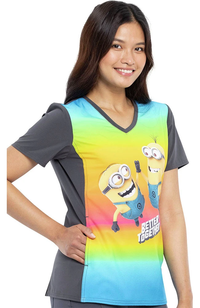 Bring the energy on your next shift with the Tooniforms by Cherokee Women’s Friends Together Print Scrub Top. The ombre backdrop and lovable minion characters add energy to your day.