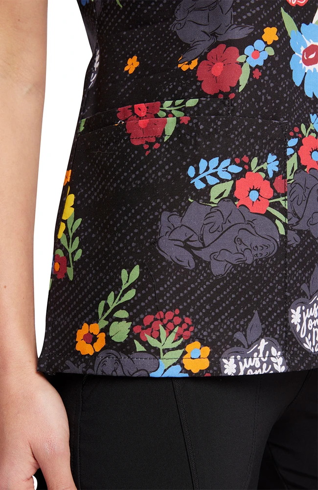 Exude kindness and optimism when you wear the Snow White-themed Tooniforms by Cherokee Women’s Just One Apple Print Scrub Top. Three pockets complete the look of this top featuring the very first Disney princess.