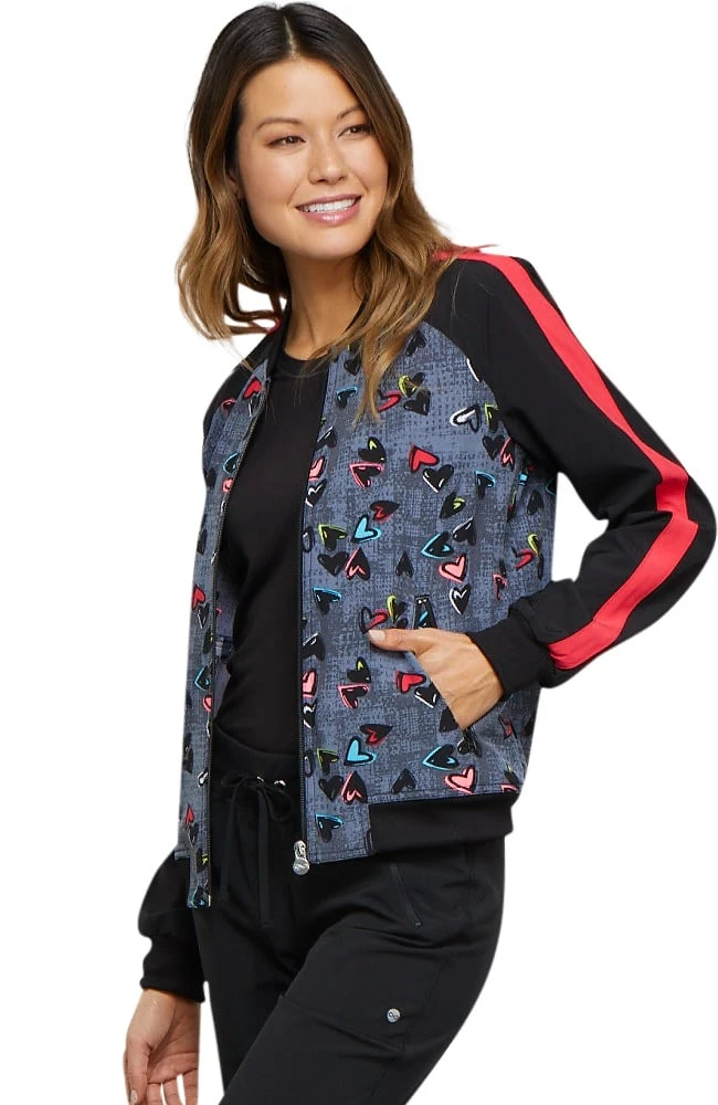 Cherokee Clearance Women’s Zip Front Heart Print Scrub Jacket