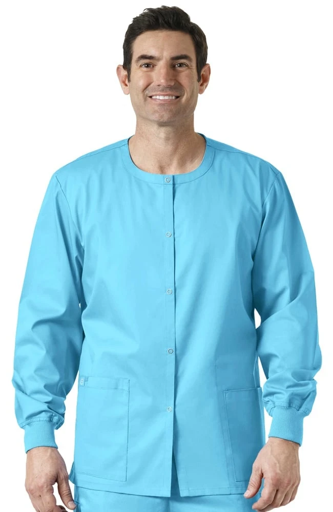 The 800 Unisex Snap Front Jackets by WonderWink WonderWORK were redesigned to add helpful details that every modern nurse needs. These solid scrub jackets kept many classic features like the snap closure or the rib knit cuffs. Some of the new features include the cellphone pocket inside a patch pocket and the tablet pocket sewn on the inside of the jacket.