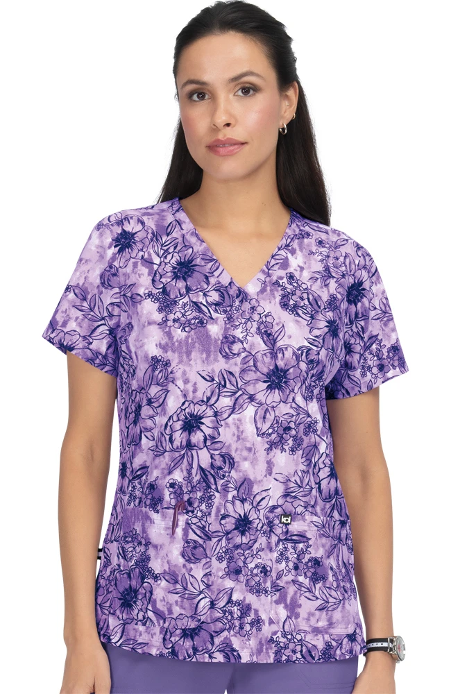 Let your style bloom in the koi Next Gen Women’s Early Energy Watercolor Botanical Wisteria Print Scrub Top. In shades of purple, this comfortable scrub top is the definition of elegant simplicity.