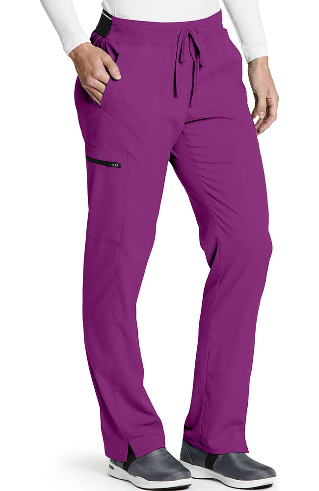 Designed to satisfy your competitive edge, the athletically-inspired Spandex Stretch by Grey’s Anatomy Women’s Kim Colorblock Scrub Pant is sure to add to your performance. Enjoy the sleek, subtle pockets, durable stretch fabric and bold colorblock statement.