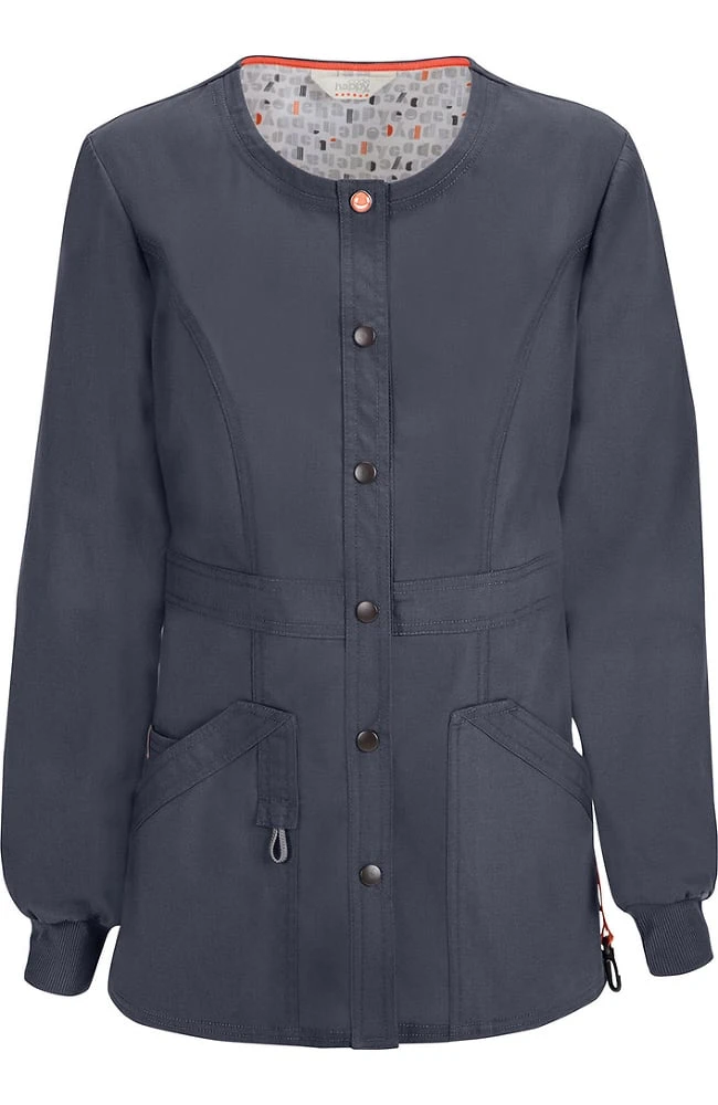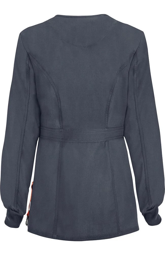 The code happy™ with CERTAINTY PLUS® Antimicrobial and Fluid Barrier Fabric Technology Women’s Round Neck Warm Up Scrub Jacket is the perfect layer to add to your scrub set. Get lots of additional pockets, plus an ID loop and superior antimicrobial and fluid barrier features.