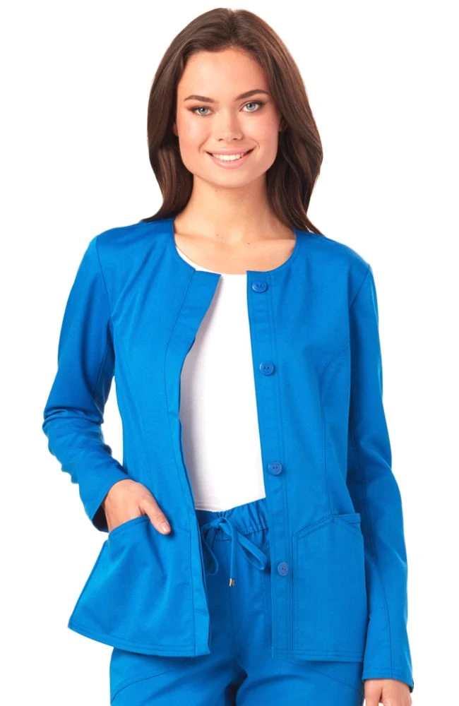 Fall in love with the Head Over Heels by heartsoul with CERTAINTY® Antimicrobial Fabric Technology Women’s Warm My Heart Button Front Scrub Jacket. Multiple pockets and contoured seaming blend fashion and function with antimicrobial fabric.