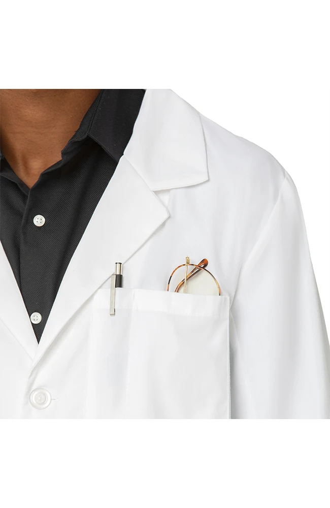 This Landau Men’s 36⅞” Lab Coat with Tablet Pocket has oversized inside pockets, complete with angled flaps for extra security. A back belt tailors the fit for a refined silhouette.