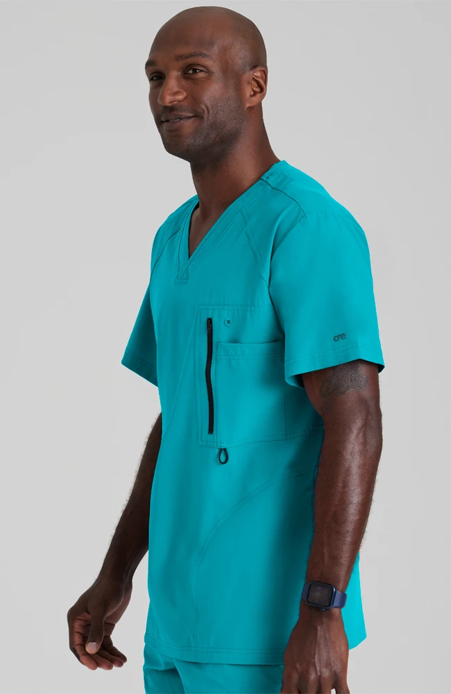 High performance and sustainable fabric transform the Barco One Men’s Amplify Solid Scrub Top. A zippered pocket secures your phone, badge or other important items with specific details designed to meet the needs to the “Healthcare Athlete”.