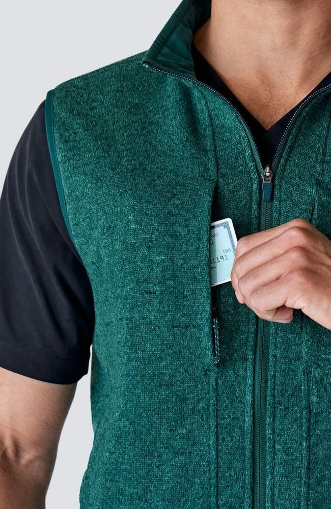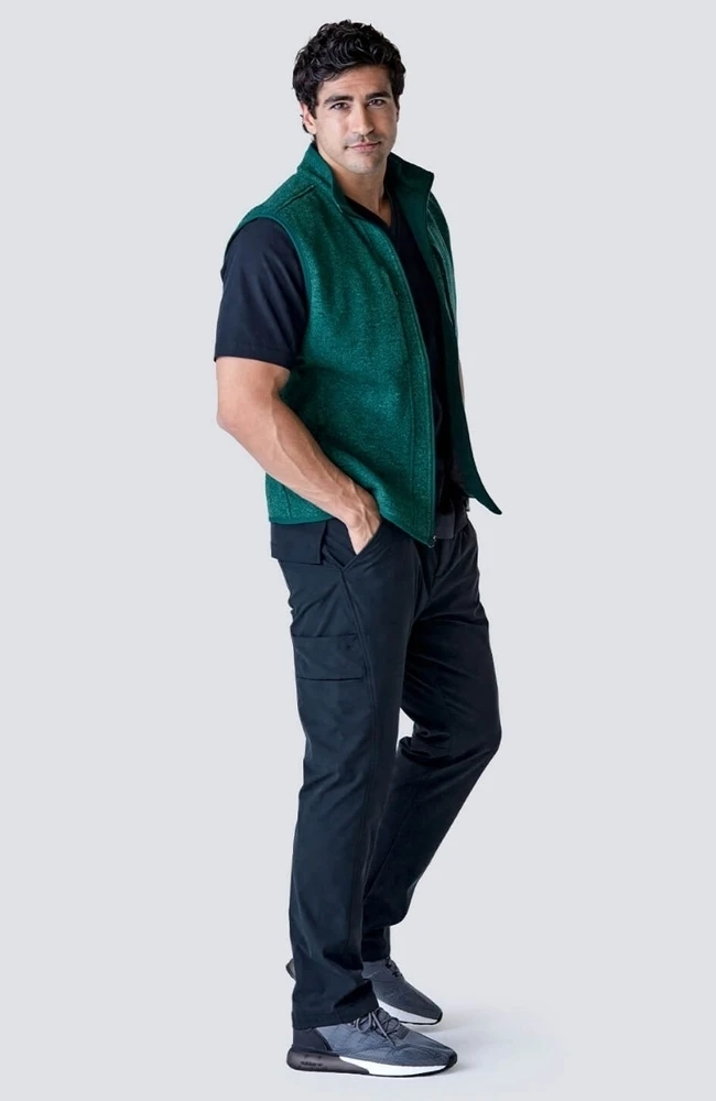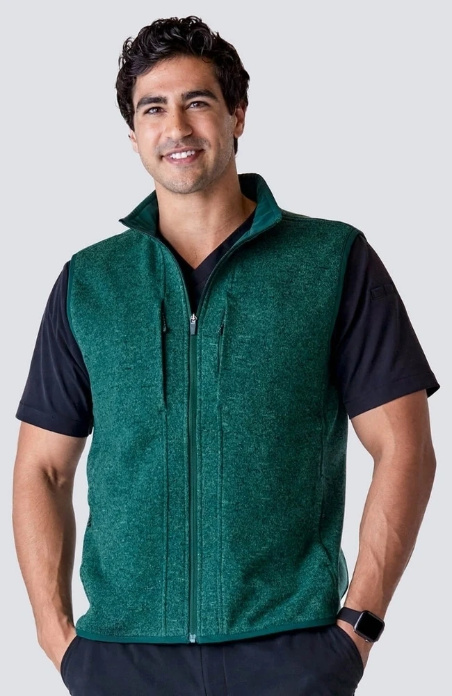 When you want a polished extra layer that is warm but won’t get in your way, the Medelita Men’s Strata Sweater Fleece Vest is for you. The soft, sweater-knit fleece looks and feels refined, while strategically placed scrub fabric inner panels help you stay cool and comfortable where you need it. With six pockets and a badge clip, it’s perfectly practical, whether you’re at work or on the go.