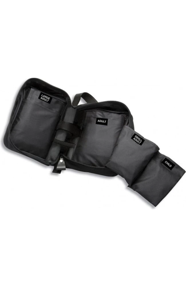 | Case measures a compact 8" x 6" x 3.5" that can easily be stored in most emergency boxes and trauma kits | |