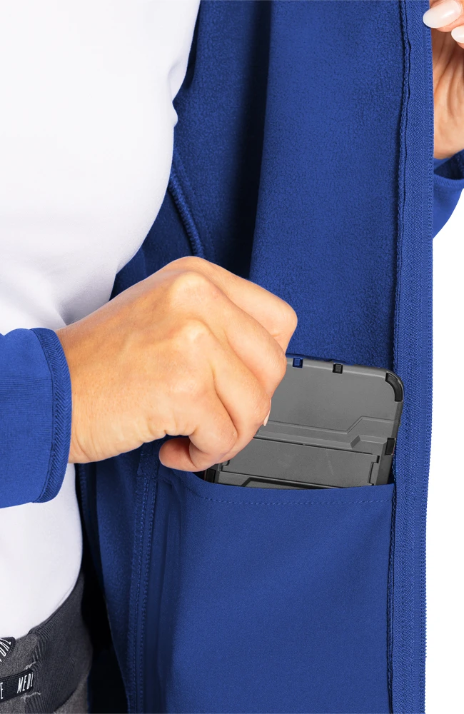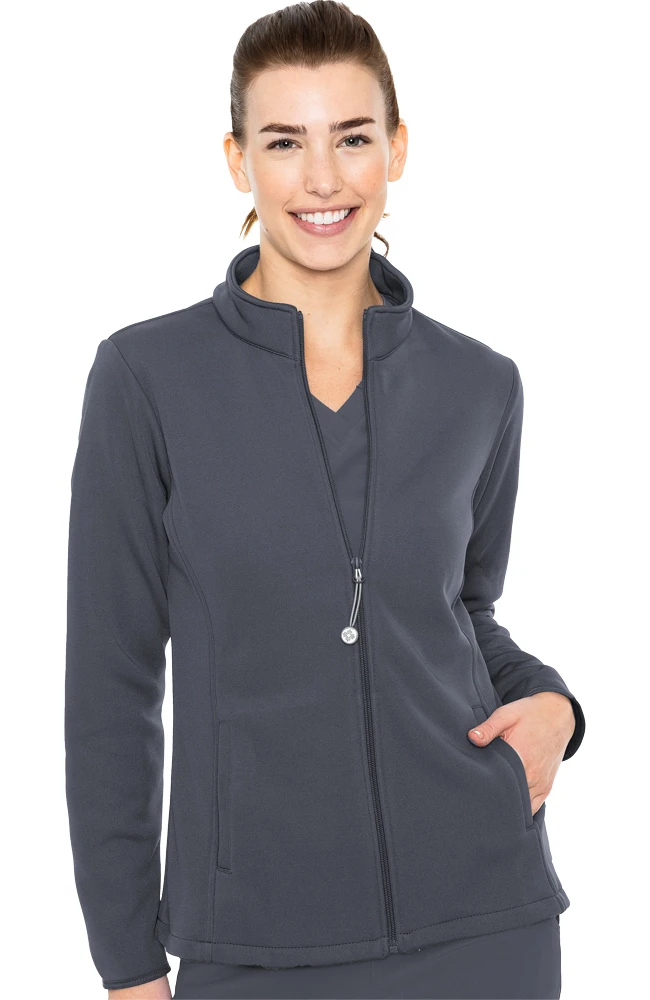Modern features make the Activate by Med Couture Women’s Med Tech Zip Up Solid Scrub Jacket an ideal update to your current scrub jacket. Cozy fleece lining keeps you warm, and a stretchy zipper pull ensures you’ll always have an extra hair-tie on hand.